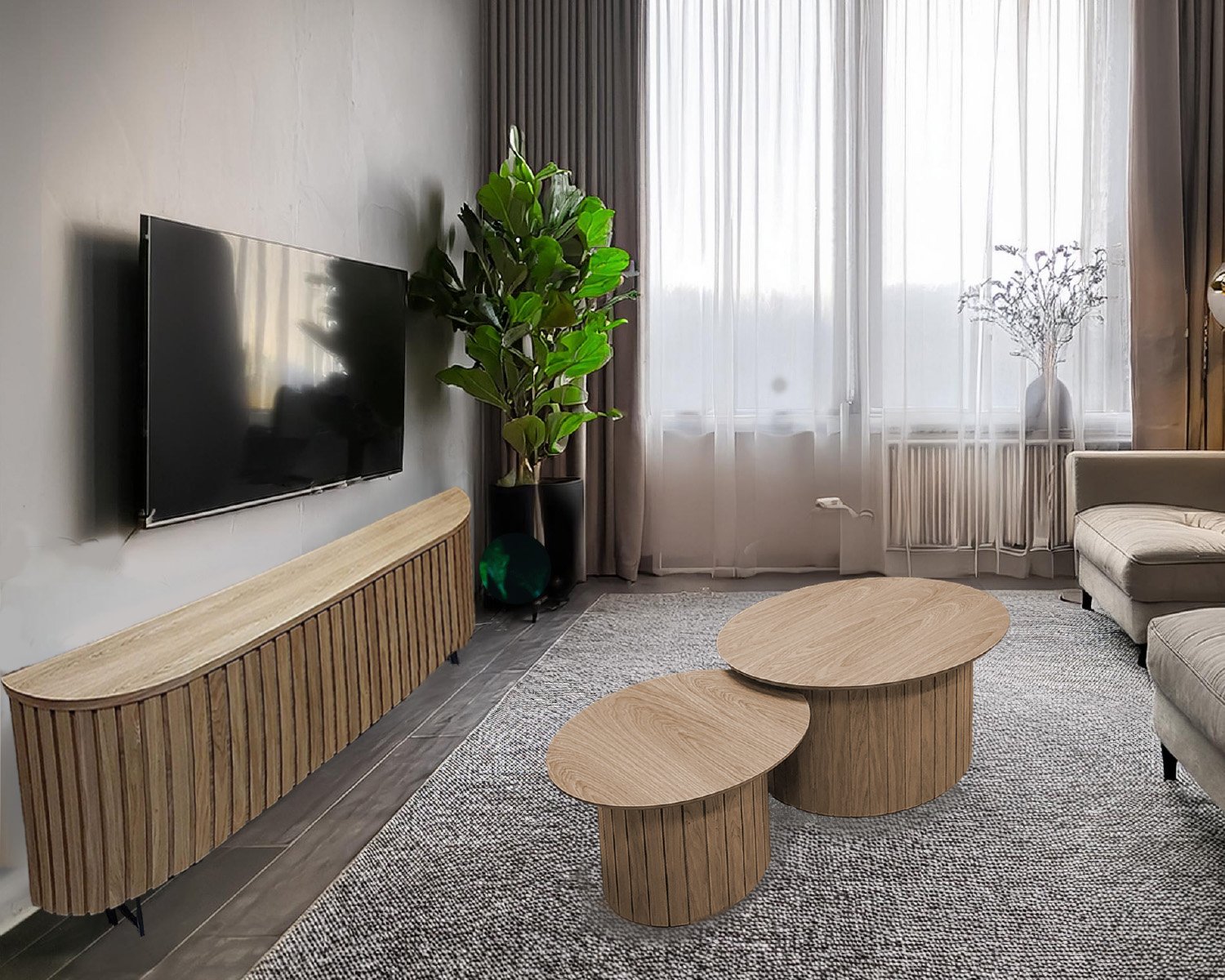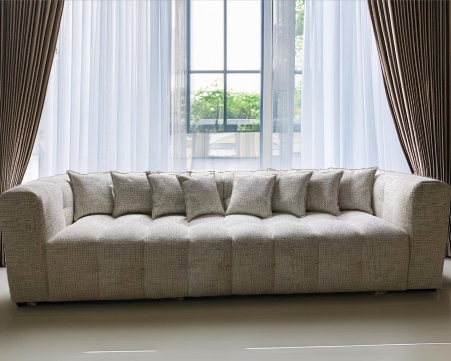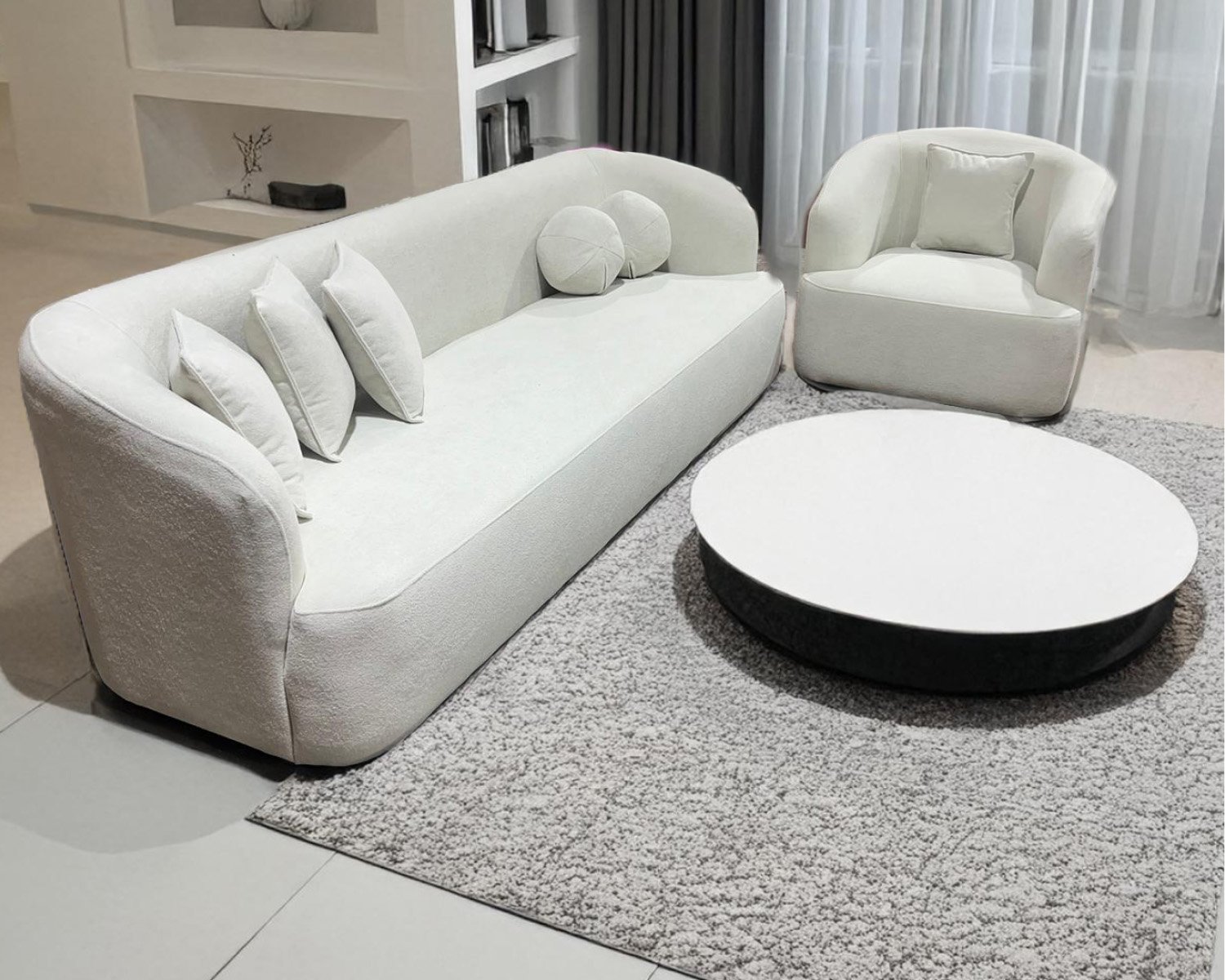 ספת מעצבים נורדית לסלון עם תיפורים עגולים